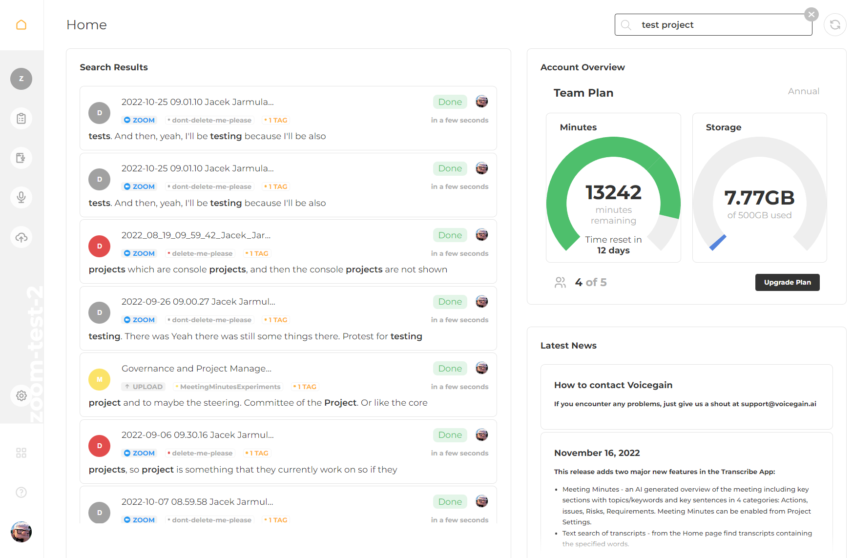 You will generally use the Search on the Home Page if you do not know what Project the transcript you are looking for is in.