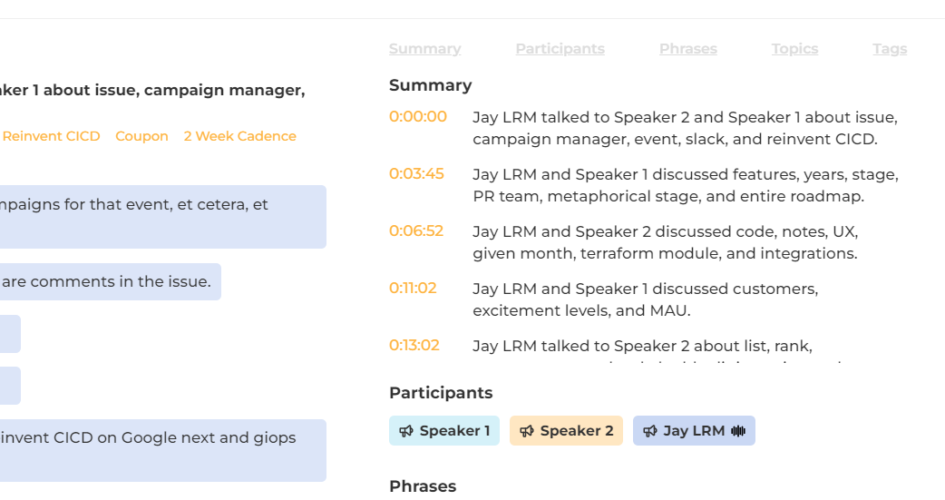 - The other is a link to transcript, if you click on it, the view will switch to the transcript at the given location. After viewing the Transcript you can click the Overview (or Key Items whichever appropriate) icon, which will take you back to where you were.