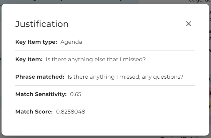Below you see a justification for a Key Item that was matched using an AI Match.